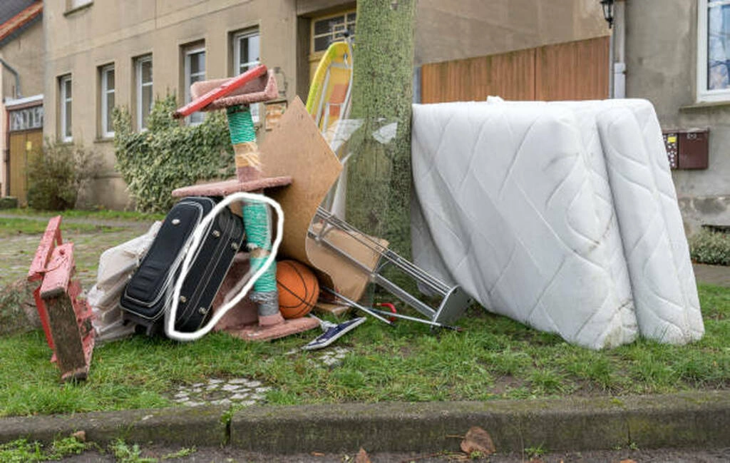 Furniture trash clothing mattresses appliances mixed junk yard debris. If the tenant left it we can remove it.